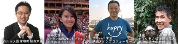 『happy - しあわせを探すあなたへ』の劇場公開に先立ち、先行上映会と幸福度に関するシンポジウムを開催します。パネリストには古川元久国家戦略担当大臣(政府における幸福度に関する研究調査を担当)、ブータン政府GNHコミッション初代首相フェロー御手洗瑞子氏、映画のメインプロデューサー、清水ハン栄治氏が参加し、いかにして幸福度の高い社会を実現できるのかディスカッションします。シンポジウムのモデレーターは長年にブータンのGNHを日本に紹介している辻信一氏です。