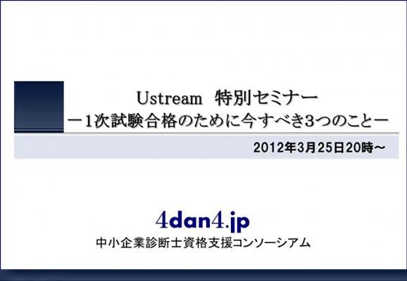 3月25日の日曜日20時~21時に、Ustrem特別セミナー 「1次試験合格のために今すべき3つのこと」を放送します。