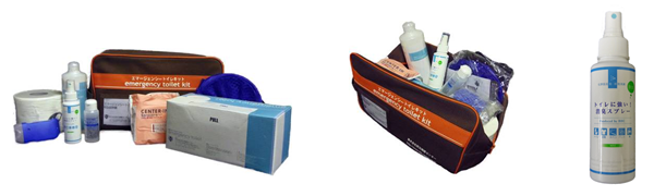 「エマージェンシートイレキット消臭スプレーin」は、救援物資が届くまでの2人で3日分の安心・安全なトイレ環境を整備するための7アイテムにトイレに強い!消臭スプレーをセットにした(株)防災備蓄センター・オリジナル商品です。(特許出願中)