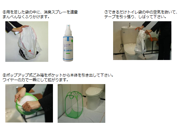そこで今回「エマージェンシートイレキット」に、当社オリジナルの消臭スプレー「トイレに強い!消臭スプレー」をセットにし、エマージェンシートイレキット使用後のトイレの臭いに配慮した新商品「エマージェンシートイレキット消臭スプレーin」を4月2日から新発売致します。トイレに強い消臭スプレーは、悪臭、有害物質を吸着し、化学反応によって臭いのない別の成分に変えるという新しい消臭スプレーです。