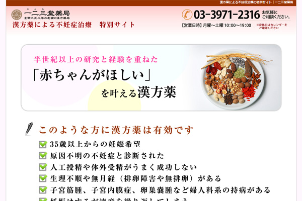 ■一二三堂薬局の「漢方薬による不妊症治療」特別ページ PCサイト