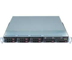 LGA-2011 ソケット(ソケット R)対応の Xeon E5-2600シリーズ CPUが2個まで搭載可能で、8台までの 2.5” HDDまたは SSDによる本格的な RAID環境がカスタマイズできるローコスト 1Uサーバーです。最大 16コア 32スレッドの並列演算処理に対応し、DDR3/1600MHzメモリーのサポート、デュアル 8GT/s QPIリンク、256ビットの浮動小数点演算レジスタ、20MBのCPU内蔵キャッシュ・メモリ、さらに進化した Intel Turbo Boost Technology 2.0の採用や AVXコマンドセットへの対応により、 HPC、クラスター、データベース、メディア・コンテンツ作成など、演算処理能力を必要とするアプリケーションのパフォーマンスを最大で 2倍向上します。また、Intelノード・マネージャーとIntelデータセンター・マネージャー機能がシステムの温度管理と大幅な消費電力の低減とを可能にし、ITインフラの性能を飛躍的に向上させる柔軟性を提供します。512GBまでのDDR3 ECC Registered または192GBまでの ECC Un-Buffered タイプの 240ピン DIMMが実装可能で、あらゆるアプリケーションに対応します。