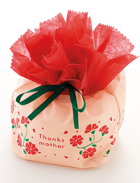 華やかなカーネーションのお花が付いたパッケージ入り。