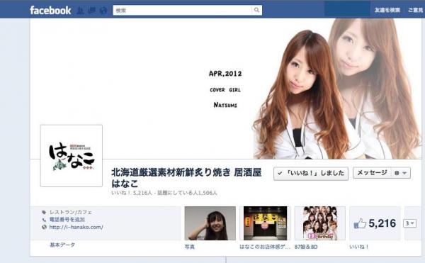 「居酒屋はなこ」のフェイスブックは、「きょうの笑顔」というコンセプトで、全国に展開する店舗の〈はなこスタッフ〉の笑顔の写真やプロフィールの紹介をFacebook を通じて展開してまいりました。また、2012 年2 月1日(水)より、日本で初めてのFacebook、Twitter 上の「居酒屋」として「居酒屋はなこFacebook 店」「居酒屋はなこTwitter 店」をオープンいたしました。