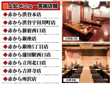 赤から銀座5丁目店、赤から蒲田駅西口店、赤から立川北口店、赤から吉祥寺店、赤から所沢店