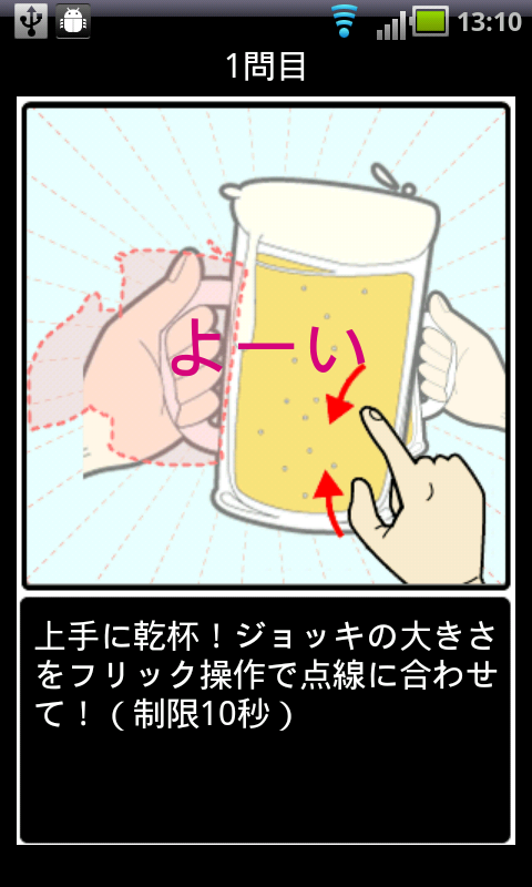 本アプリはランダムで選ばれるお題4問にチャレンジして、その結果から酔いどれ度を診断致します。