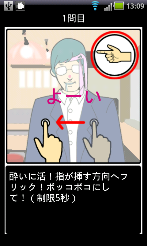 ・フリックしてビンタ - 指定された方向へ画面をフリックしてビンタしまくれ!