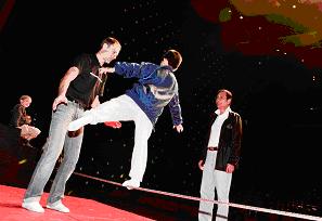 キンダーマーティン氏は14歳の時に、アメリカ、バーモント州の著名なサーカス団体、サーカス・スマークス・ユース・サーカスにて綱渡りを始めました。のちに、カナダとフランスにて綱渡りと曲芸芸術を学びました。彼と仲間の綱渡りアーティストであるDidier Pasquette氏は、1997年にロンドン・テムズ川を二人で渡るというギネス記録を打ち出しました。2007年、韓国、ソウルの川幅0.5マイルの漢江を渡り、二度目のギネス記録を樹立しました。世界的に有名なシルク・ド・ソレイユで4年を過ごし、キンダーマーティン氏は世界中でパフォーマンスを行い、さらに大きな記録達成へ向けて準備しています。彼はまた、サーカスや、特別なイベントに際に独特の世界観を演出する他に、高所作業仕事を行うアーティスト集団のリーダーでもあります。
