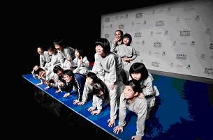 スカイウォーカー兼、プロのスタントウーマンのカリン・モフリー氏とLar de S. Jose Ka-Ho学校の生徒。彼女と夫、ジェイド・キンダーマーティン氏が4月11日のサンズ・コタイ・セントラル開業での綱渡りに先駆け、水曜日、サンズ・マカオ・シアターにて綱渡りワークショップを開催した。