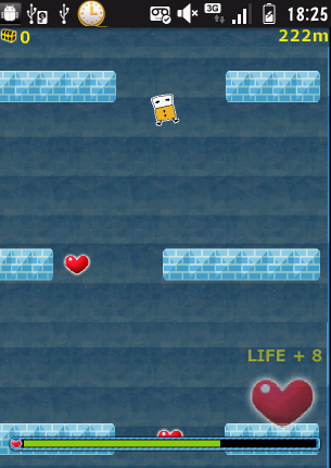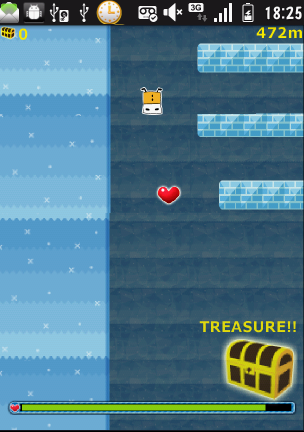 ルールは簡単!スマホを左右に傾けてプレイヤーキャラを操作してライフの続く限り南極の大穴の中をひたすらに落ちて行きます。ライフは自然に減って行きますが壁等の障害物に当たると更に減ってしまいます。途中にあるライフや宝箱を上手く回収しながら落ちる事が重要です。