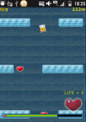 ルールは簡単!スマホを左右に傾けてプレイヤーキャラを操作してライフの続く限り南極の大穴の中をひたすらに落ちて行きます。ライフは自然に減って行きますが壁等の障害物に当たると更に減ってしまいます。途中にあるライフや宝箱を上手く回収しながら落ちる事が重要です。