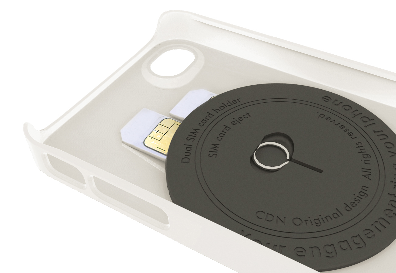 ・ SIMフリーiPhoneユーザーにはうれしい機能!ケースの内側にmicroSIMカードを2枚収納できるポケットと、イジェクトピンホルダーを装備。