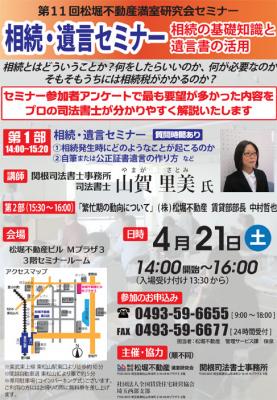 「相続・遺言セミナー」14:00~15:20