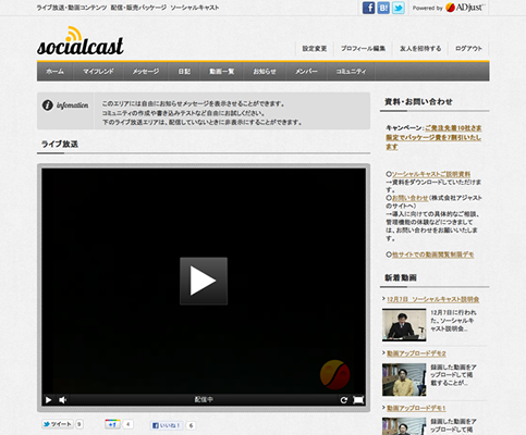 ソーシャルキャストは会員サイト内でライブ放送や動画配信を行うためのサーバ設置型ソフトウェアパッケージです。