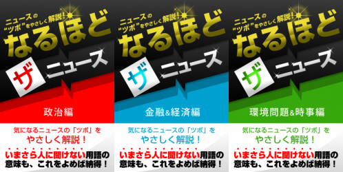 株式会社メディカム(本社:東京都渋谷区)は、iPhone/iPad用電子書籍『「なるほど・ザ・ニュース」シリーズ3作品、金融&経済編・政治編・環境問題&時事編』を、本日より4月8日までの期間限定で特別価格にて提供させて頂きます。