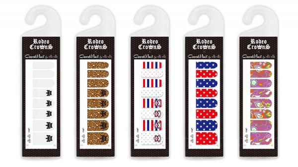 “vlli vlli”の『CoordiNail』は、貼るだけで手軽に本格的なネイルアートを楽しめる、ファッション感覚のネイルアイテムとして、ファッショニスタなどの間で話題の商品です。その『CoordiNail』 と、POPなデザインとカラー使いが人気の『RODEO CROWNS』のコラボが実現しました。RODEO CROWNSを象徴するクラウンモチーフやロデオクラウンズロディのデザインが、HAPPYな気分にさせてくれる全5種。