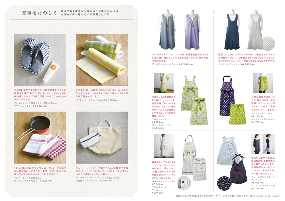 商品例/花柄エプロンとタオルのセット 7,245円(税込)、陽ざしケアセット 9,030円(税込)、雨の日のおでかけセット 7,612円(税込)、ティーセット 5,985円(税込)、ほか