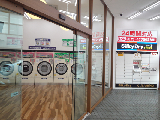 また「シルキードライ+Plus江坂店」では、外部の行灯看板や店外照明、スポットライト、内部の店内照明、バックヤード、看板類に至まで、その全てでLED方式を採用し、経費削減は元より「クリーンビジネスの従事者」としての「エコ化推進模範店舗」を目指す。