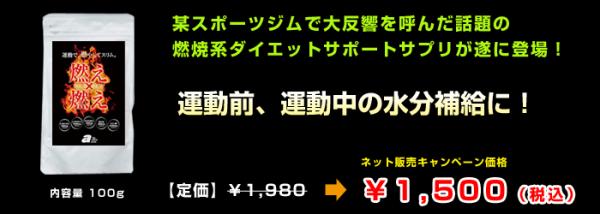 サプリ「燃え×燃え」のお試し用100gの販売を開始した。