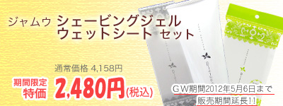 ジャムウシェービングジェルとジャムウシートの大特価セット。当初は2012年3月7日~4月30日までの販売予定でございましたが、