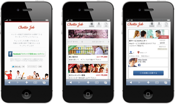 身の回りの問題を解決したいFacebookユーザと、気軽にお金を稼ぎたいFacebookユーザをマッチングするサービスとなっております。