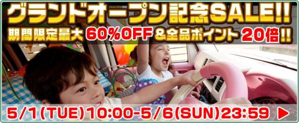 株式会社コージィコーポレーション(本社:大阪市中央区、代表取締役: 髙林更次)の運営するSTARVATIONS(スターベイションズ)は、2012年5月1日(火)公式PCサイトをグランドオープン!オープン記念として、全品20倍ポイント、最大60%オフセールを開催します!