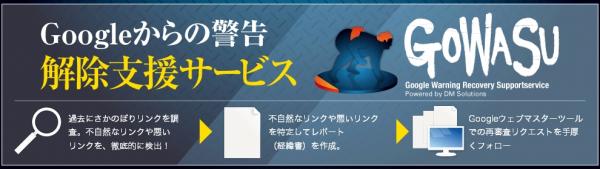 当社においても不自然な外部リンクに関する警告を受け取ったサイト運営者の方から対応方法に関するご相談をいただく事例が増えており、この度正式なサービスとしてGoogleウェブマスターツール警告解除支援サービス『GOWASU』をリリースさせていただく運びとなりました。