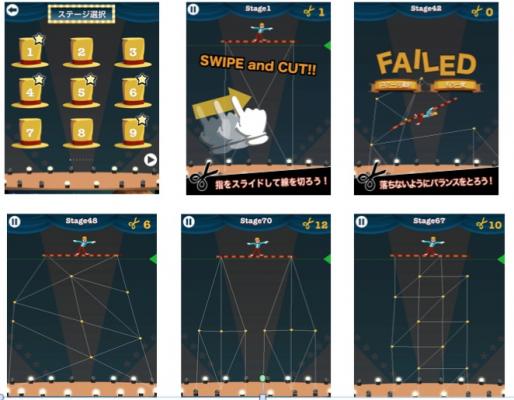 このワイヤーを切った時のバランス計算やステージの倒れ方には、東京大学で研究開発された物理シミュレーション技術が使われているため、リアルさを感じながらアプリを楽しめます。