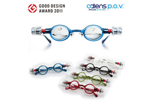 「adlens p.o.v」(アドレンズ ピー・オー・ヴィー)は自分で視力を矯正出来るという画期的なメガネ。世界初の液体レンズ技術を採用し、衝撃に強く耐久性に優れたポリカーボネートを採用。取り外し可能なダイヤルを使用して左右別々に度数の調整が可能で、鼻パッド・テンプルの調整も可能。5色のフレームから選択が可能(ブルー・レッド・グリーン・ダークグレー・クリアー)。