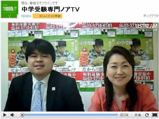 中学受験専門プロ個別指導塾ノア、家庭教師センターの運営(中学受験・高校受験・大学受験、プロ家庭教師ノア) 苦手科目克服のための個別指導塾・桜塾、都立桜修館中等対策専門プロ個別指導塾ノア、中学受験専門過去問TVの運営をしている教育事業の総合商社、株式会社日本受験研究所(本社:東京都大田区、代表取締役:飯塚祐也)が2012年5月8日(火)16:30生放送を開始しました。