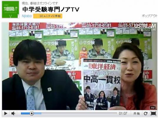 中学受験の過去問特集番組「ノアTV」による生放送(2012年5月9日)のお知らせ