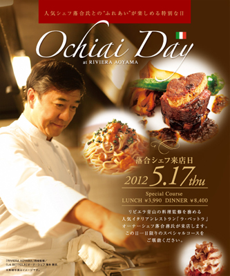 リビエラ青山の料理監修を務める人気イタリアンレストラン「ラ・ベットラ」オーナーシェフ落合務氏の来店日が決定致しました!毎回、大好評をいただいている旬の素材を使った一日限りのスペシャルランチ&ディナー。この機会に大切な方と大切な時間を心ゆくまでお楽しみください。