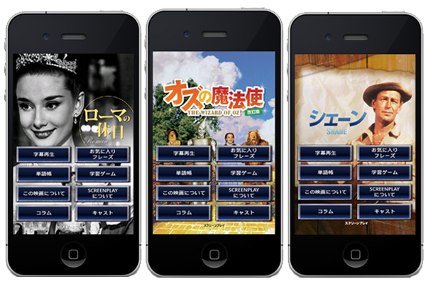 映画に登場するフレーズや単語を学習ゲームとして楽しむ事ができます。