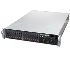 LGA-2011ソケット(ソケット R)対応の Xeon E5-2600シリーズCPUが個まで搭載可能な2Uサーバーです。SSDの装着が容易な16台の2.5インチ・ホットスワップ対応のリムーバブル・ベイ、充実した拡張バス構成、さらに2重化電源の採用が幅広いアプリケーションへの対応を可能します。最大16コア 32スレッドの並列演算処理に対応し、DDR3/1600MHzメモリーのサポート、デュアル8GT/s QPIリンク 256ビットの浮動小数点演算レジスタ、20MBのCPU内蔵キャッシュ・メモリ、さらに進化したIntel Turbo Boost Technology 2.0の採用やAVXコマンドセットへの対応により、HPC、クラスター、データベース、メディア・コンテンツ作成など、演算処理能力を必要とするアプリケーションのパフォーマンスを最大で2倍向上します。また、Intelノード・マネージャーと Intelデータセンター・マネージャー機能がシステムの温度管理と大幅な消費電力の低減とを可能にし、ITインフラの性能を飛躍的に向上させる柔軟性を提供します。512GBまでのDDR3 ECC Registered または192GBまでの ECC Un-Buffered タイプの240ピンDIMMが実装可能です。
