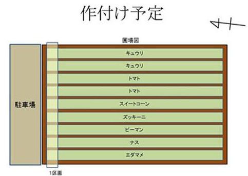 作付け品目:ミニトマト、キュウリ、トウモロコシ、ズッキーニ、ピーマン、ナス、エダマメ