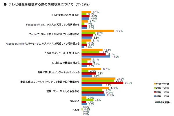 ■ 見たいテレビ番組の情報収集元、10代ではTwitterが20.2%で上位