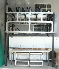 洗浄機の構造上、「洗浄槽への製品の投入・槽から槽への移し変え・取り出し」のたびに作業者は階段を上り下りしていました。それにより作業者には大きな負担がかかるとともに、一つ一つの作業に時間のかかる非効率的な業務となっていました。