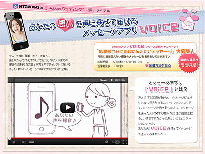 「みんなのウェディング」サイト内にて、NTTメディアサプライの『voice』特設ページを開設し、広く告知します。