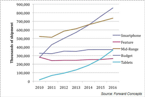 Table 7 Cellphone & Tablet Shipment Growth by Segment: ’11-'16.