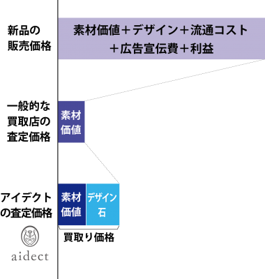 アイデクトの独自の査定手法、地金などの素材価値だけではなく、「デザイン」を査定に加味
