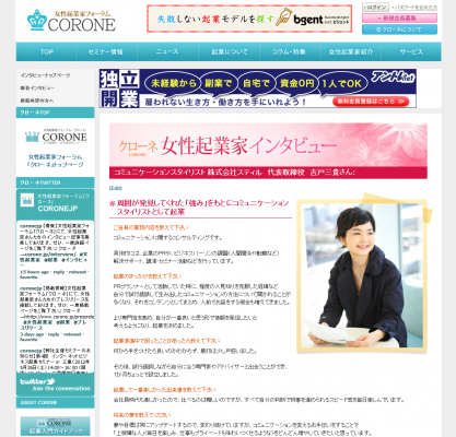 クローネ(女性起業家インタビュー):http://www.corone.jp/interview/