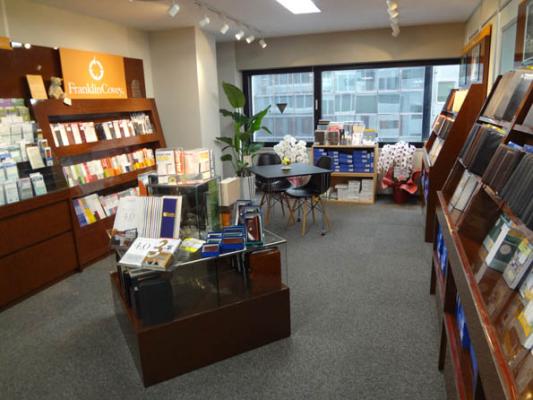 営業時間は:月曜日~金曜日(祝祭日を除く)10:00~17:00となります。新商品やフランクリン・プランナーの時間管理に関するコンテンツを豊富に取り揃えておりますので、お近くにお越しの際は是非お立ち寄りください。