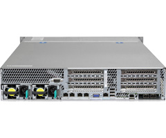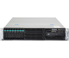 2個までのソケット(ソケットR)対応シリーズCPUが搭載可能な2Uサーバーで、8台までのハードディスクおよびSSDが直接装着できる2.5インチ・リムーバブル・ベイを装備しています。最大16コア32スレッドの並列演算処理、DDR3/1600MHzメモリーのサポート、デュアル8GT/s QPIリンク、256ビットの浮動小数点演算レジスタ、20MBのCPU内蔵キャッシュ・メモリ、さらに進化したIntelR Turbo Boost Technology 2.0の採用やAVXコマンドセットへの対応により、HPC、クラスター、データベース、メディア・コンテンツ作成など、演算処理能力を必要とするアプリケーションのパフォーマンスを最大で2倍向上します。また、IntelRノード・マネージャーとIntel データセンター・マネージャー機能が、システムの温度管理と大幅な消費電力の低減を可能にし、ITインフラの性能を飛躍的に向上させる柔軟性を提供します。