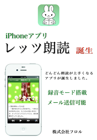 「絵本を読んだことはあるけれど」「興味はあるけれど朗読教室に通うのは、たいへん」と思っているあなたに『レッツ朗読』をお届けします。見て・聴いて・読んで、簡単にトライできます。楽器とのコラボレーションも楽しめます。いつでもどこでも朗読の魅力が堪能できるアプリです。録音した朗読をメールで友達に送ることも出来ます。