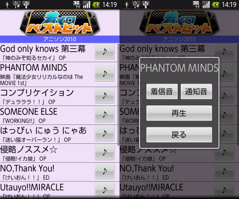 同シリーズは演歌やJ-popなど既に7アプリをリリースしております。今回は2010年にヒットしたアニソンを収録した「アニソン2010」編と、童謡をテーマに定番の曲を収録した「童謡 1」編の2アプリをリリース。各アプリに12曲ずつ収録しており、アプリから着信音や、通知音に設定することが可能です。