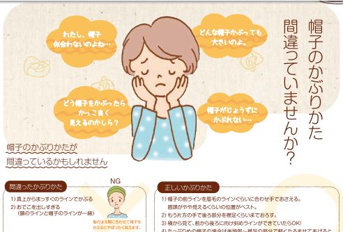 (1)女優の田中美里さんと共同で開発した、女性のがん患者さま、男性のがん患者さま向けの機能性とファッション性に富んだ女性用オリジナル帽子Bijou Spice(ビジュスパイス)、男性用オリジナル帽子Neo Spice(ネオスパイス)を掲載・紹介。