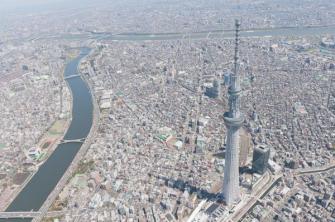 日中帯と夕暮れ時のフライト。600m上空から東京の雄大な風景と新名所・東京スカイツリーを堪能できるコースです。