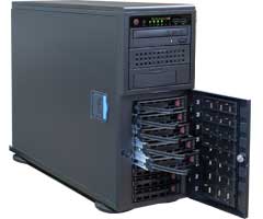 8台の2.5インチまたは3.5インチSAS/SATAディスクがマウントできるホットスワップ・ベイを標準装備した多目的RAIDサーバーです。オプションのラック・コンバージョンキットにより、ラックマウント・モデルとしての運用も可能です。