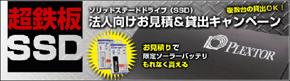 ビジネスには欠かせない高速性、信頼性と安定性をすべて備えたSSDをお求めの方は、是非本キャンペーンをご利用ください。お見積もり頂いたお客様には、Plextorのロゴが入った限定ソーラーバッテリーiCharge Liteをプレゼントいたします。導入前の性能評価のための貸し出しも行っていますのでお気軽にお問い合わせください。