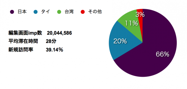 昨年の6月に編集機能+ソーシャル機能を搭載したアプリとしてリリースし、今年5 月に編集機能に特化したアップデートバージョンをリリースしたところ、1週間で45万ダウンロード、累計で100万ダウンロードを達成致しました。